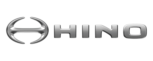 Hino logo with a stylized emblem and the word Hino in metallic letters